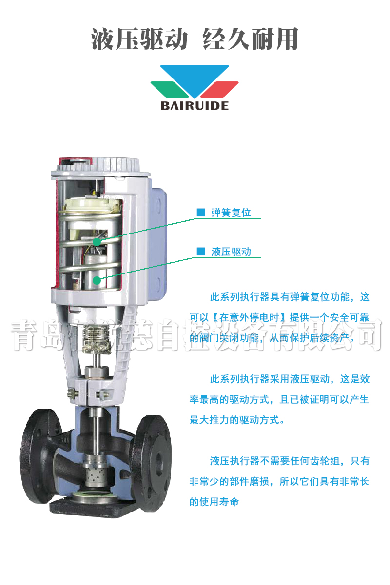 ※該液壓執行器始終有一個預設彈力為2800牛的彈簧以提供彈簧復位功能>這可以提供可靠的安全關閉功能